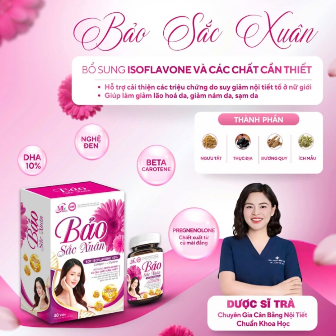 - Bồi bổ khí huyết: Khác với các sản phẩm chỉ tập trung vào nội tiết, Bảo Sắc Xuân có các vị thuốc quý giúp điều hòa kinh nguyệt, tăng cường lưu thông máu, từ đó giúp sắc diện hồng hào và cải thiện giấc ngủ.
